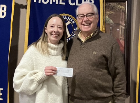 Kiwanian Steven Leggett presents a $500 check to Mallory Wilcox from Big Brothers/Big Sisters.